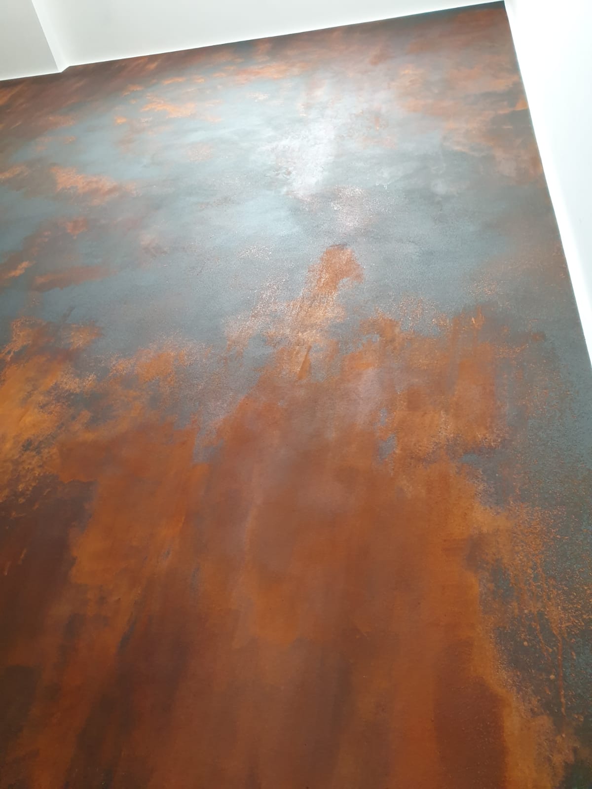 Lucrare realizată de specialiștii Vibe Atelier cu ajutorul startului decorativ cu efect antichizat Ironic de la Novacolor.